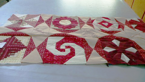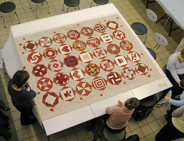 1) Janvier 2008: Il est temps de passer à la phase concrète d'assemblage du quilt. Ainsi un deuxième courrier est envoyé à chacune pour expliquer et préciser la suite des opérations. Nous nous réunissons à plusieurs reprises les samedis après-midi pour travailler ensemble.