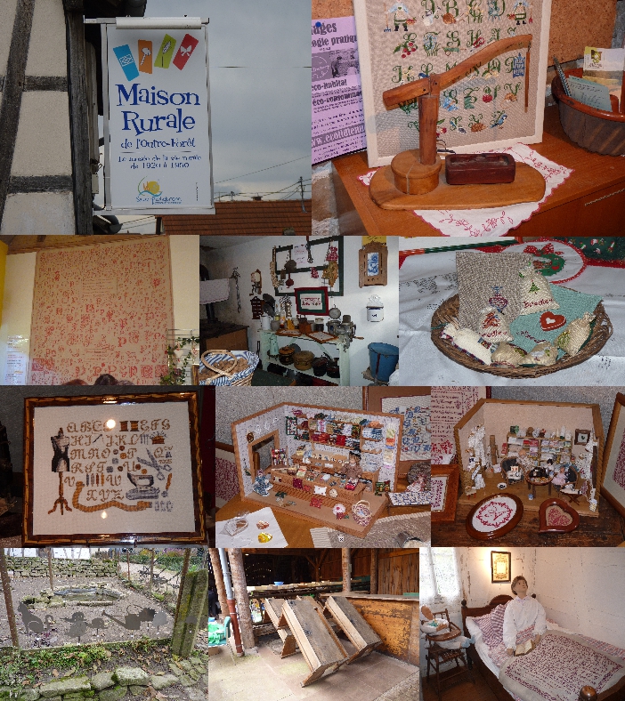 Exposition dans un cadre idyllique puisque dans la maison rurale de l'outre forêt ( un nom de conte d'enfant ). Rencontre de savoir faire ( dentelle au fuseaux, enluminure, calligraphie) . Espace commercial avec des exposants et des artisans du terroir : une dame qui « travaille » avec la nature et des végétaux avec des feuilles plus précisément qu'elle décompose pour en faire des dentelles, des tableaux...