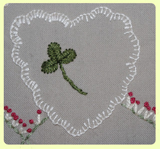 Voici ci-dessous la photo de mon œuvre. Il s'agit d'une boite à gorge, (employons le vocabulaire des pros s'il vous plait !). Sur le couvercle on voit apparaître une petite broderie. Pour l'occasion j'ai cherché une broderie de derrière les fagots, il s'agit d'une miniature que j'ai réalisée il y a bien longtemps et qui trouve désormais sa place sur cette boite.