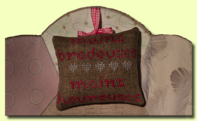 Il y a tout ce que j'aime : de l'appliqué, de la broderie, des perles de rocaille et un petit volant en toile à beurre.