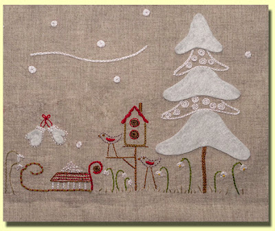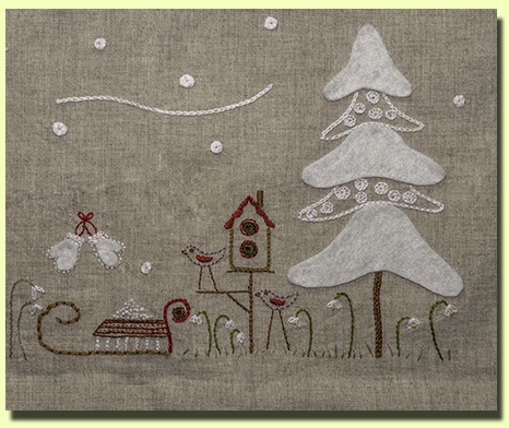 Et voici le dernier né. C’est une création. J’avais dans mon armoire un kit de broderie « d’un chat dans l’aiguille ». Après l’avoir brodé durant le mois d’octobre, je l’ai inséré dans un patchwork de ma composition. C’était aussi l’occasion d’utiliser des restes de tissus rouges et blancs que j’affectionne tout particulièrement. J’ai même utilisé pour broder le texte de la bordure un vieux fil perlé DMC en rouge changeant. L’ouvrage une fois terminé il ne me restait que 10 cm de fil !