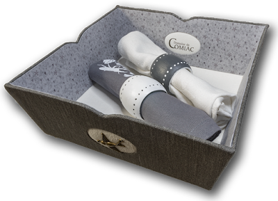 Une composition corbeilles à pain, serviettes de table et ronds de serviette pour nos amis vigneron… pour embellir leurs chambres d’hôtes.