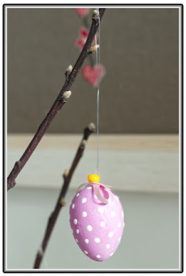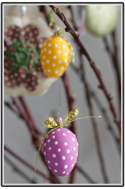 Mon bel arbre de pâques 2018 composé avec différentes réalisations crées les années passées: Lapins en feutre blanc, fleurs, œufs en plastique peint avec des acryliques etc..