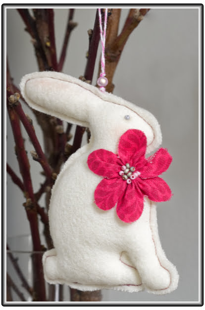 Mon bel arbre de pâques 2018 composé avec différentes réalisations crées les années passées: Lapins en feutre blanc, fleurs, œufs en plastique peint avec des acryliques etc..